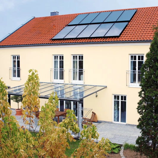 Los colectores planos son de aplicación universal para montaje sobre cubierta o sobre estructuras adicionales, por ejemplo, en cubiertas planas, incluso en fachadas. Está disponible en formato vertical u horizontal. El sistema de fijación de Viessmann es de fácil montaje con piezas de acero inoxidable y aluminio comprobadas estáticamente y resistentes a la corrosión.